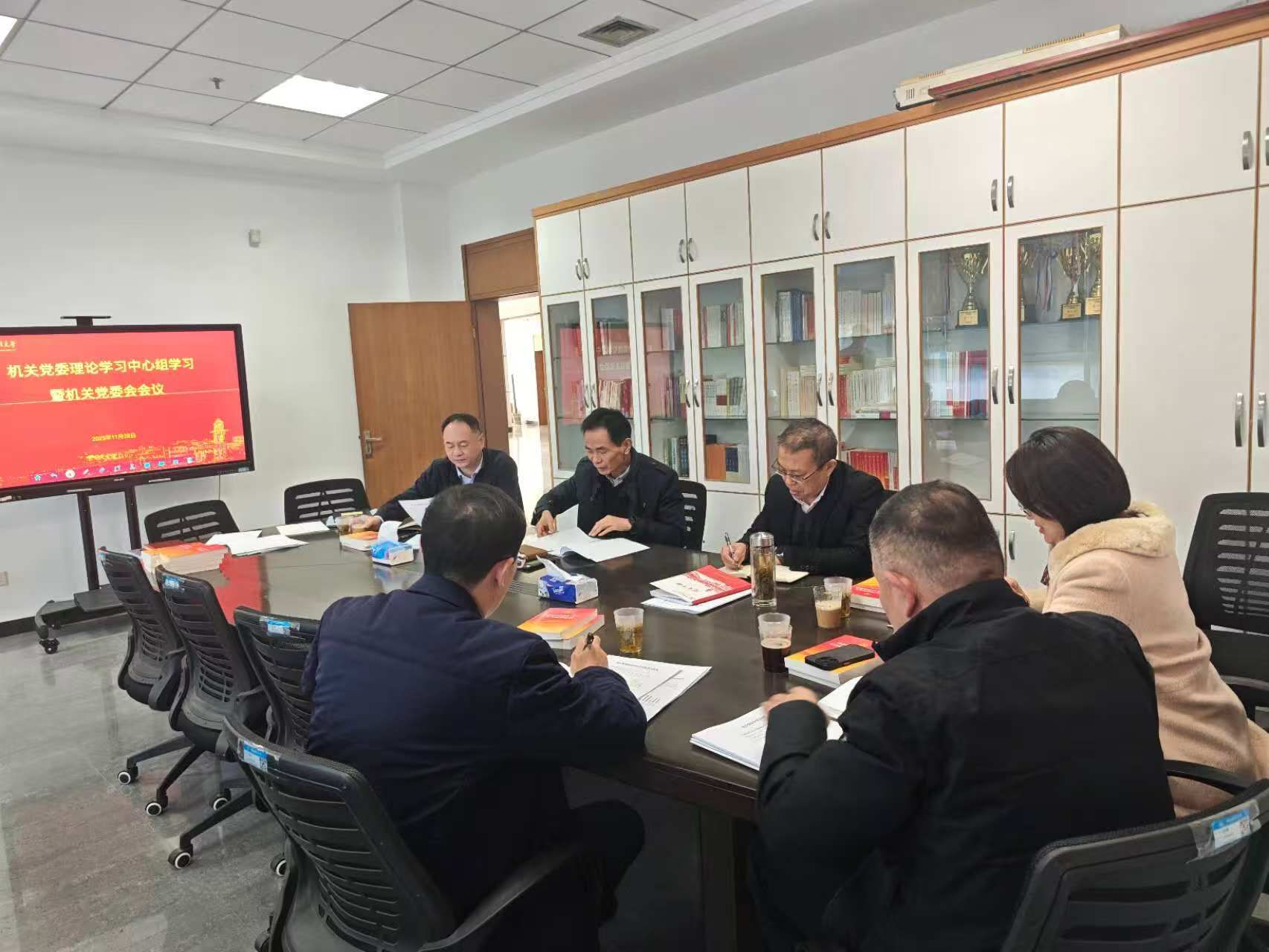 11月30日下午,机关党委理论学习中心组在中原楼206会议室开展集中学习,机关党委书记靖才春主持学习,机关党委委员参加学习。
